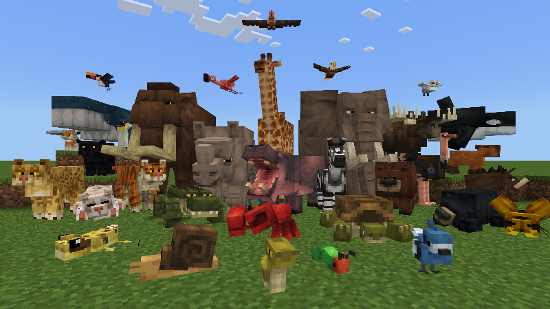 マインクラフトの世界にたくさんの本物っぽい動物