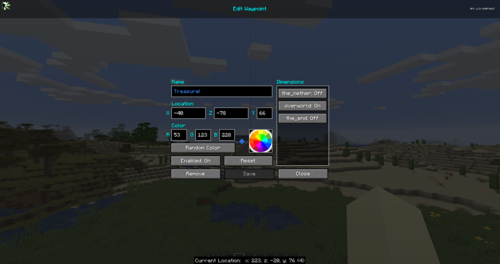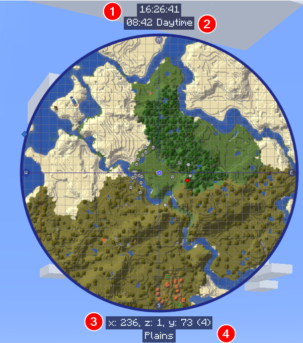 移動するだけで地形が記録され、地上・地下・ネザー・エンドも対応。 - ミニマップ表示